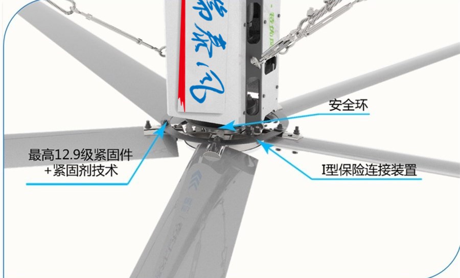 安全的,瑞泰風(fēng)大風(fēng)扇的核心理念,采用10道(安全繩、安全環(huán)、防掉落軸套技術(shù)、I型扇葉鏈接、12.9級(jí)緊固件、防松動(dòng)緊固劑、扇葉加強(qiáng)設(shè)計(jì)、加強(qiáng)型插件設(shè)計(jì)、控制系統(tǒng)過(guò)載保護(hù)等)以上安全防護(hù)措施,組件全部采用全球頂級(jí)知名品牌施耐德、威圖、以及德國(guó)動(dòng)力技術(shù),做到絕對(duì)的萬(wàn)無(wú)一失。